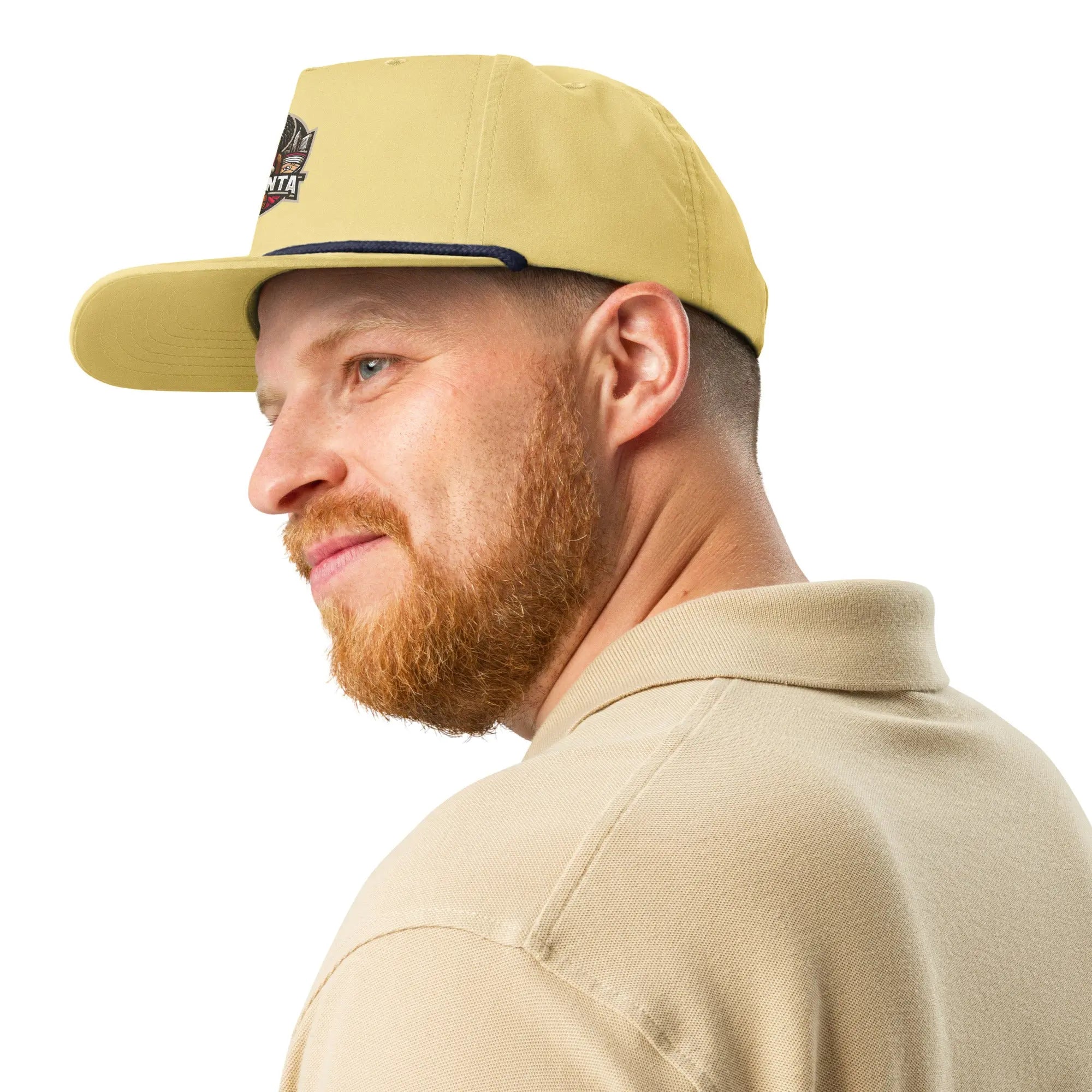 • Semi-curved bill with contrasting rope